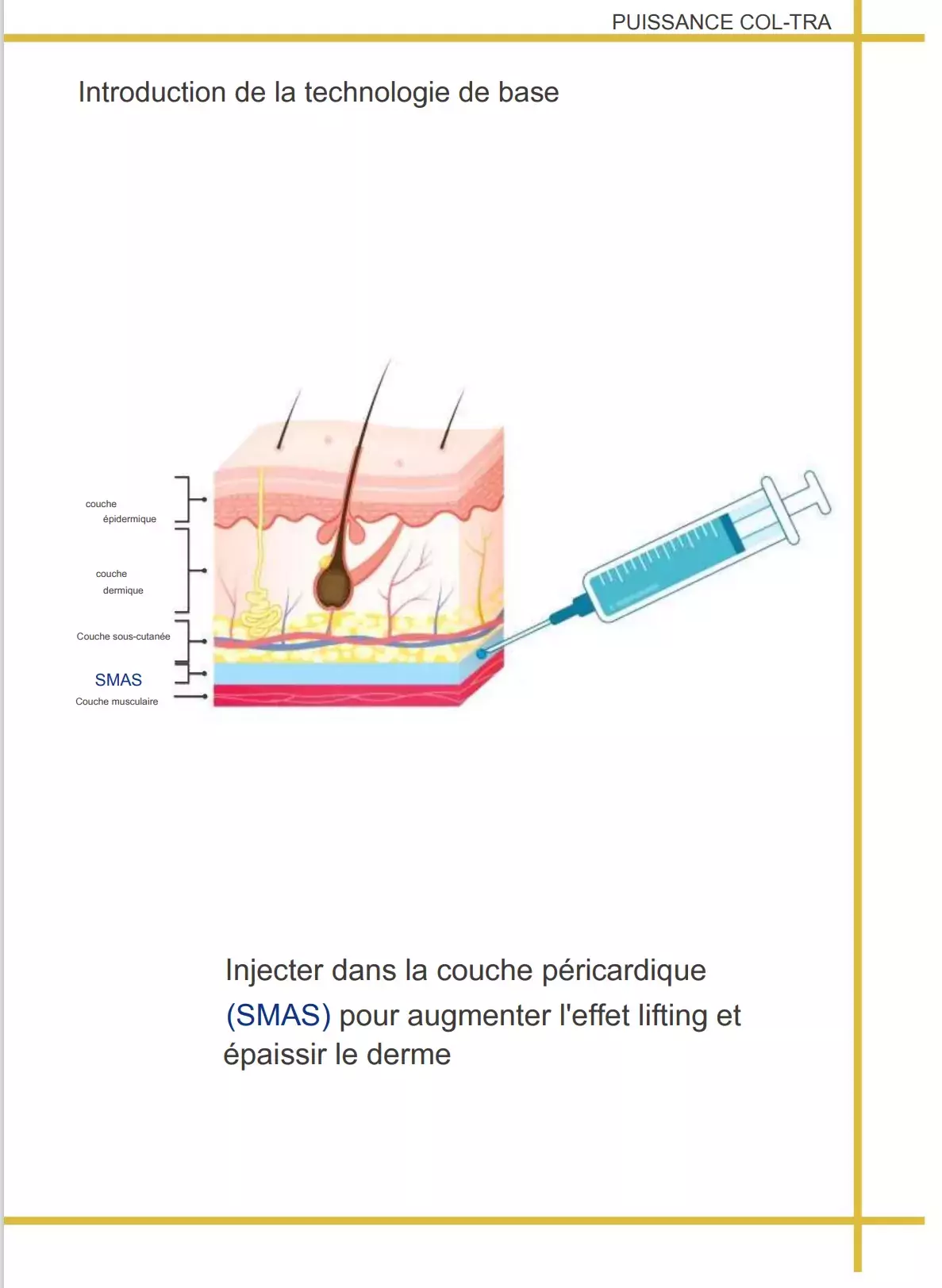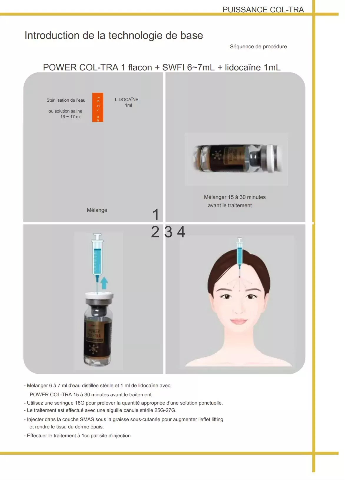 Power Col Tra 365 ML, est un produit pour la perte de volume du visage. Recommandé pour les personnes qui ont perdu leur élasticité et leur volume (pour le raffermissement de la peau et les rides). Le produit stimule le collagène dans la couche sous cutanée profonde pour maintenir naturellement le volume du visage. Favorise la croissance du volume dans la zone du visage et la création de nouveau collagène dans la peau. Après le traitement vous devez le masser autour de la zone de traitement. Ces massages peuvent s’étaler en un seul endroit, ce qui peut avoir un effet plus satisfaisant et également réduire les inquiétudes concernant les effets secondaires.